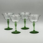 4 Fostoria Swirl Optic Green Stem Tall Champagne Coupe Glasses Uranium 5 1/8”