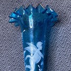 Vintage Mary Gregory Blue Fluted Flower Vase Cherub Angel Victorian Style 7
