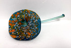 Blenko Glass Flower – Cerulean with Orange & White Frit