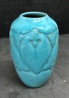 California Faience Pottery Turquoise Glaze Vase Signed 5.25” Tall