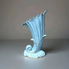 Vintage 1950’s Cornucopia Shell Horn Camark Art Pottery Vase Light-Blue Green