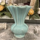 Vintage Camark Fan Vase Art Pottery Aqua. 8" MCM