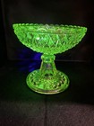 Antique Central Glass No. 775 Block and Diamond Vaseline Glass Compote – Uranium