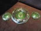 Central Glasswork rolled rim Cut Console Bowl with 2 uranium candleholders 1930s