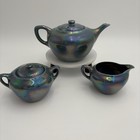 Cowan Pottery Blue Iridescent Teapot Cream & Sugar Set Numbered Oil Drip Glaze
