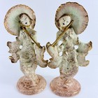 Hedi Schoop Pottery Chinese Asian Couple Man Woman Ceramic Green Planter Set 12"