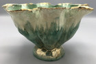 Hedi Schoop Pottery Bowl Ruffle Edge Green Bowl Gold MCM Signed