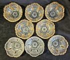 Vintage Heisey Prince Of Wales Plume Berry Bowls Gold Gilding SET 8 Sawtooth Rim