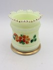 Antique Heisey Ring Band Custard Uranium Glass Spooner Hand Painted Floral