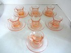 Heisey Glass Flamingo Pink Yeoman Coffee Tea Cup & Saucer- Set of 7