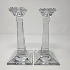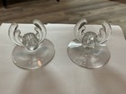 Antique Heisey Empress Pair Of Crystal Candle/ Vases 3 Prisms Each Etched 7.5”