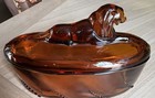 Imperial Heisey CG Glass Lion Oval Amber Glass Vanity Box MCM Excellent Shape!