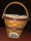 1994 Longaberger Basket w/ Lilac Floral Liner Protector & Ceramic Tie-On Combo