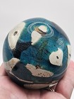Signed Mdina Art Glass Paperweight Blue & Brown Tiger Swirl Bulb Malta Studio