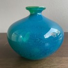 VTG Michael Harris MDINA Glass Ming Blue & Green Glass Vase Malta Rare Signed