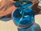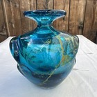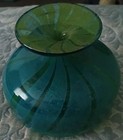 Vintage 1970’s signed Blue / Green Mdina Malta hand crafted art glass vase