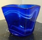 Signed Mdina, Malta Cobalt Blue / White Swirl Tapered Square Vase 3"x4.38" Excel