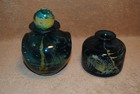2 Vintage Mdina Glass Vases Top Hat Double Pulled Ear Turquoise & Mustard Color