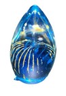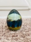 Mdina Glass Paperweight Vtg. Malta Egg Cobalt Blue 'Tiger' pattern Signed