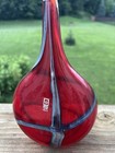 2006 Mdina Malta Iridescent Red Onion Vase Blue & Green Lines 8.5” Tall