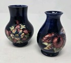 VINTAGE MOORCROFT POTTERY SET OF 2 SMALL VASES BUD VASE BLUE ORCHID ENGLAND RARE