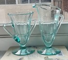 Vintage Morgantown Glass Clear Crinkle Pattern Water Jug Pitcher and 8 tumblers