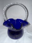 Art Deco Glass BASKET, Vase, Morgantown, Ritz Blue, Cobalt