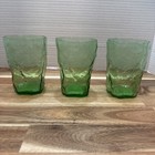 THREE Mid Century MORGANTOWN Green CRINKLE Tumblers 10 oz Glasses 4 1/8" Tall