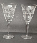 2 Vintage Morgantown Glass Co. Mayfair Wine glasses 7.5" Stems Etched floral