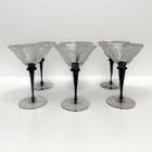 6 Morgantown Athena Carlton-Etched Ebony-Cased Stem Martini/Champagne Glasses