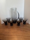 Set of 7 Vintage Morgantown Black Glass Goblets or Water Glasses