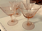 Set 4 Morgantown Pink Depression stemmed glass Martini Goblets cocktail drink