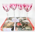 4 Moser Crystal Wine Glasses, Signed Vintage Rose Cut Crystal Elegant Stemware