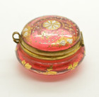 Antique Cranberry Glass Patch Box w/ Moser Style Enamel Painting Trinket Casket