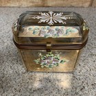 Antique Bohemian MOSER Glass Enameled Gilded Casket Jewelry Trinket Box Flowers