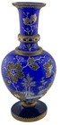 Antique Czech Bohemian Glass Vase Cobalt Blue Raised Enamel & Gold 9” Moser?