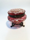 Antique Moser Bohemian Cranberry Glass Gold Enamel Hinged Trinket Box Footed