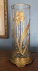 Superb Antique Pair Art Nouveau Gilded Floral Optic Glass Mounted Vases Moser?
