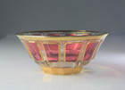 Antique Bohemian Moser Gilt Handpainted Enamel Red Cut to Clear Art Glass Bowl