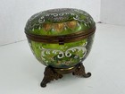 Moser Bohemian Green Glass Footed Dresser Lidded Box Raised Enamel 19th Century