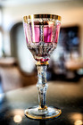 Antique Bohemian Moser Glass Wine Goblet Gold Glit Hand Painted Clower