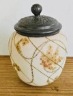 Antique Mt. Washington Glass Biscuit Jar Hand Painted Flowers White / Pink Glass