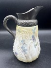 Mt. Washington Glass-Colonial Ware-Blue Floral Decor Handled Creamer-Scroll Mold