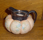 Antique Mt. Washington Glass Melon Ribbed Creamer – Peach w/ Flowers – 3 1/4"