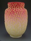 MT. WASHINGTON GLASS SATIN PEACH BLOW CORALENE SEAWEED 6.75" VASE