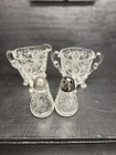 New Martinsville Glass Prelude Etched Salt & Pepper And Cream & Sugar Sets