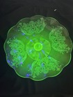 Paden City Rare Uranium Green Cupid Glass Footed Cake Plate 11" X 1 7/8"Tall