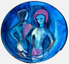 Polia Pillin Blue Woman Mother Ceramic Art Pottery Bowl Dish Plate 11.5×8.5"