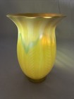 HUGE Art Nouveau Unsigned TIFFANY ? QUEZAL ? Iridescent Gold Wave Art Glass Vase
