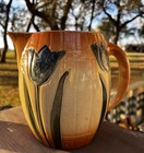RARE! Antique (pre 1920) Roseville pottery pitcher, blue tulips on barrel shap